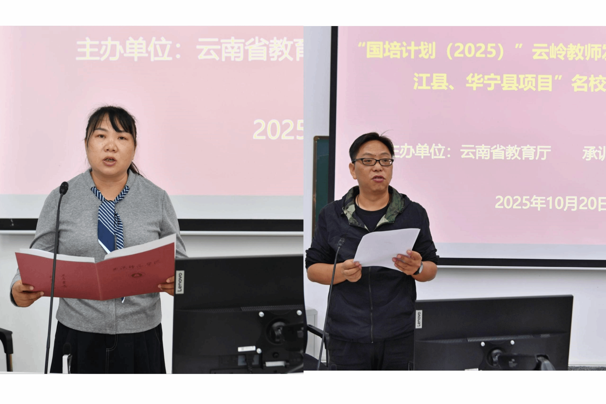 典礼上,华宁县与元江县的学员代表先后登台发言。他们结合自身教育管理经验,分享了对本次培训的期待,畅谈了对新时代学校发展的思考,言语间满含对教育事业的热忱与担当,生动展现了新时代校长的专业素养与育人追求。